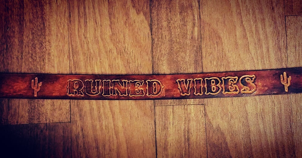 This item is fully custom. It will take 6-8 weeks to make. It will include “Ruined Vibes” on the back center and whatever name you’d like. It will also include your city’s initials (I.e. “L.A.”). It will not include a buckle. All belts will also include cactus logos. All belts will be numbered starting at 2. Duh, I own no. 1. Please email your waist size when ordering.